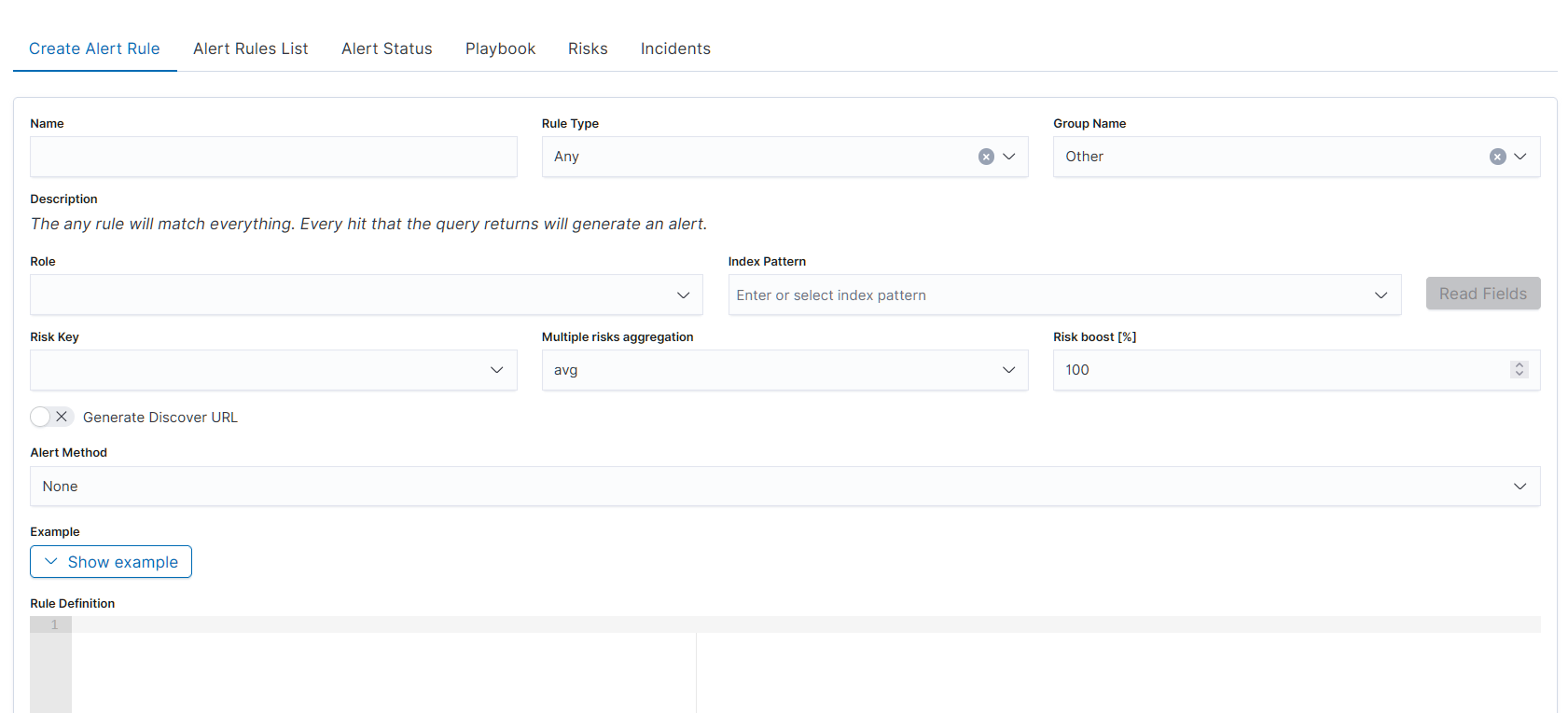 source.ip,user.name).Risk Level: Set severity (Low/Medium/High/Critical).